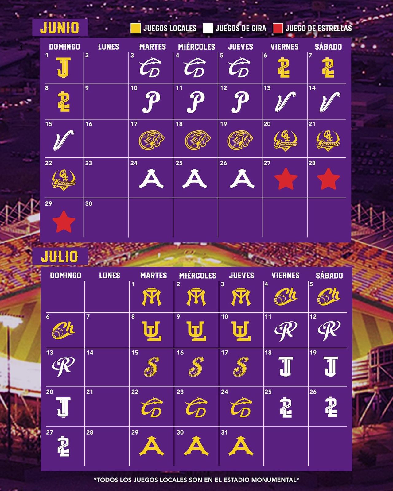 Mientras que, en el Estadio Monumental, recibirán a los Bravos del León entre el 17 y 19 de junio, para después enfrentar a los Guerreros de Oaxaca del 20 al 22 en lo que será el duelo del mánager dorado, José “Tony” Valentín ante su ex equipo.